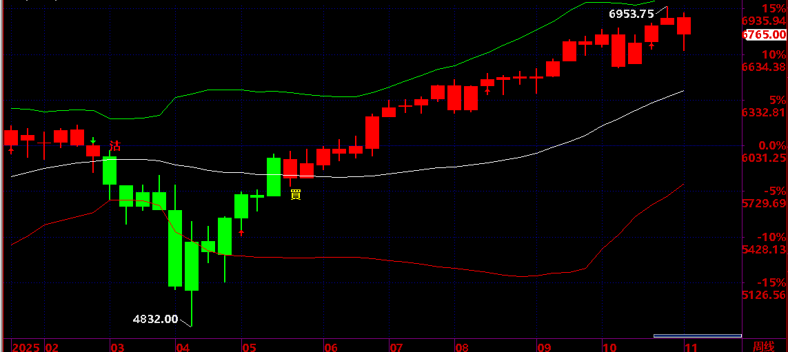 10.20 已經提醒 :保持 6800之上,保持短線上升狀態,才有機會上升到 ==》10.28 後有回吐機會;