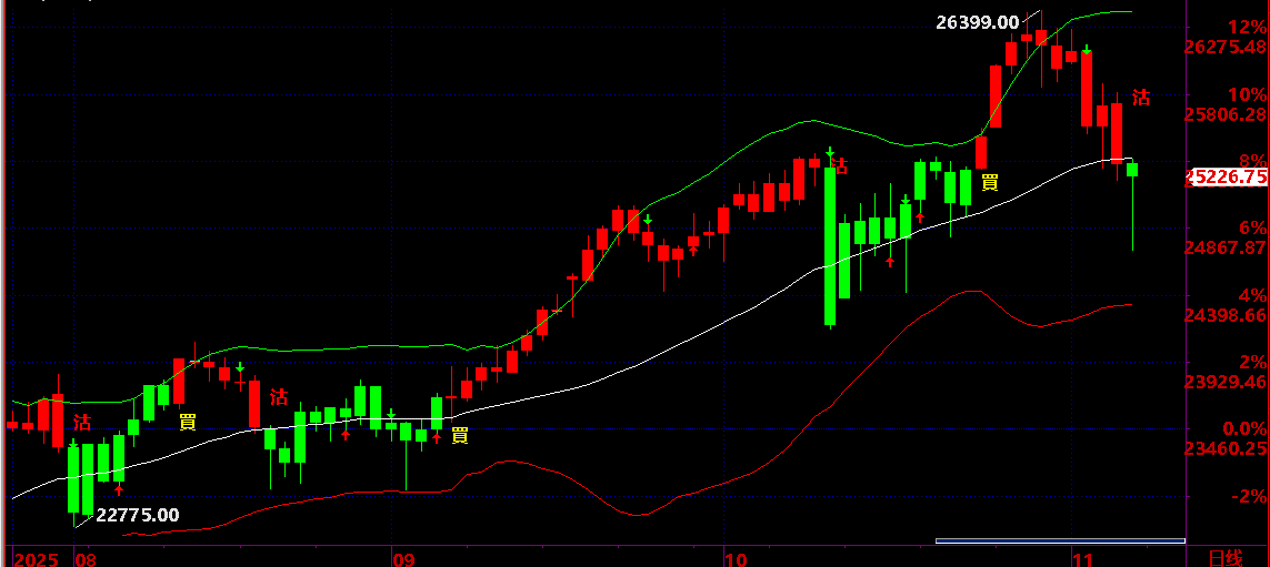 11.04:保持 25520之下。保持短線回落狀態,才有機會回落到 11.12 後有反彈機會;