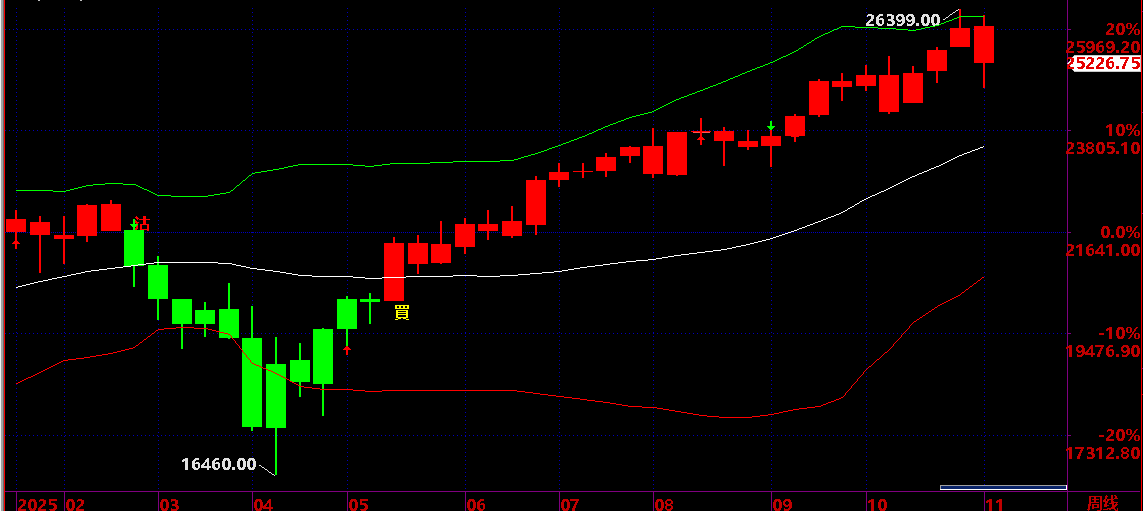 10.20 已經提醒 :保持 25400之上,保持短線上升狀態,才有機會上升到 10.28 後有回吐機會;