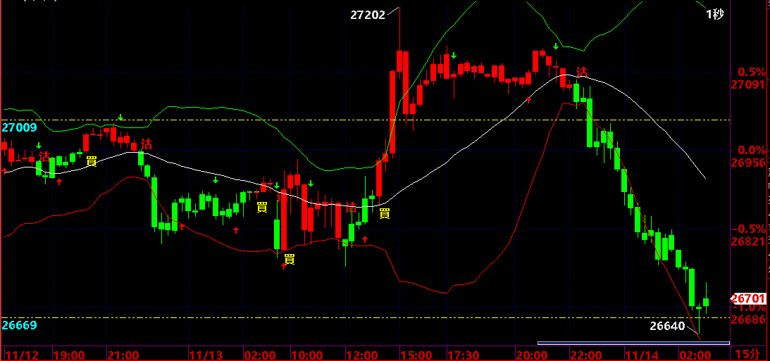 11.14 恒指、HHI、黃金、YM、ES、NQ期貨圖表策略分析