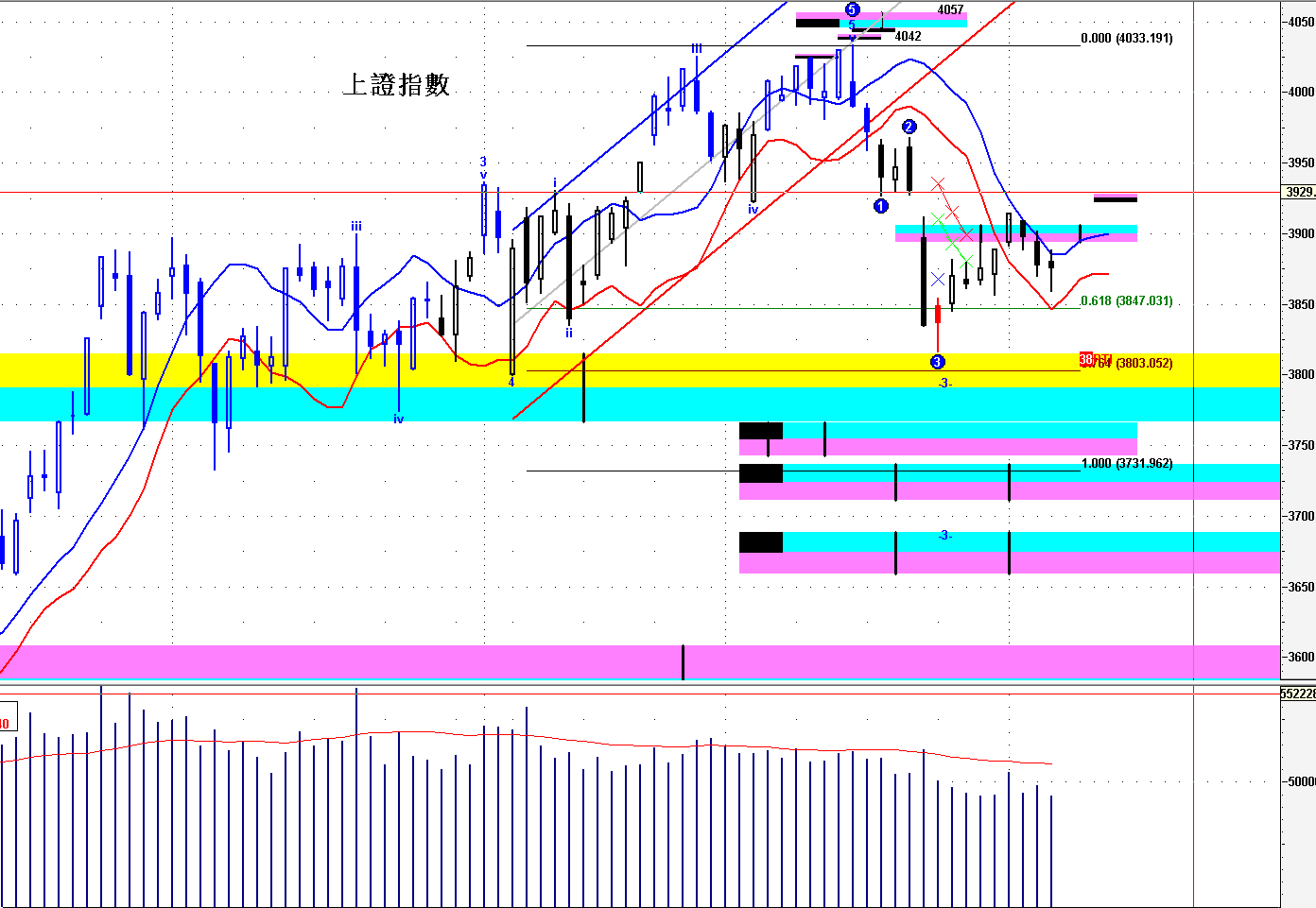 ==》保持 3850--70 之下,結束短線上升,開始短線回吐 ;