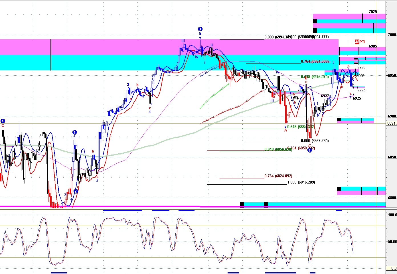01.06pm 恒指、HHI、黃金、YM、ES、NQ期貨技術圖表