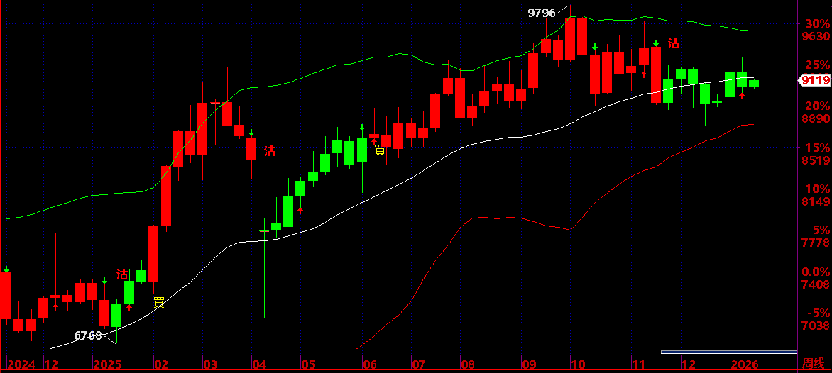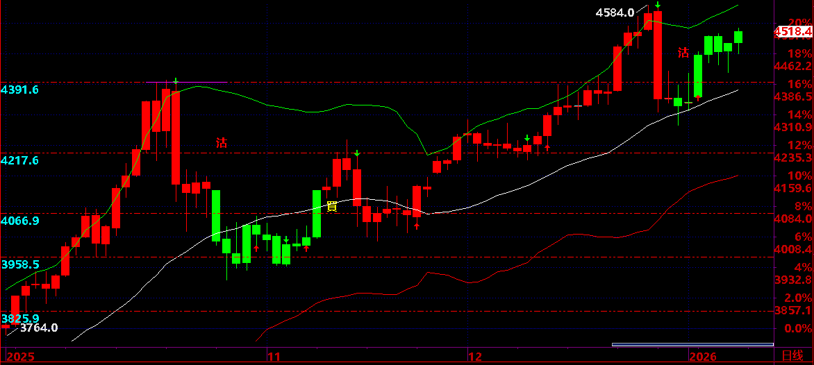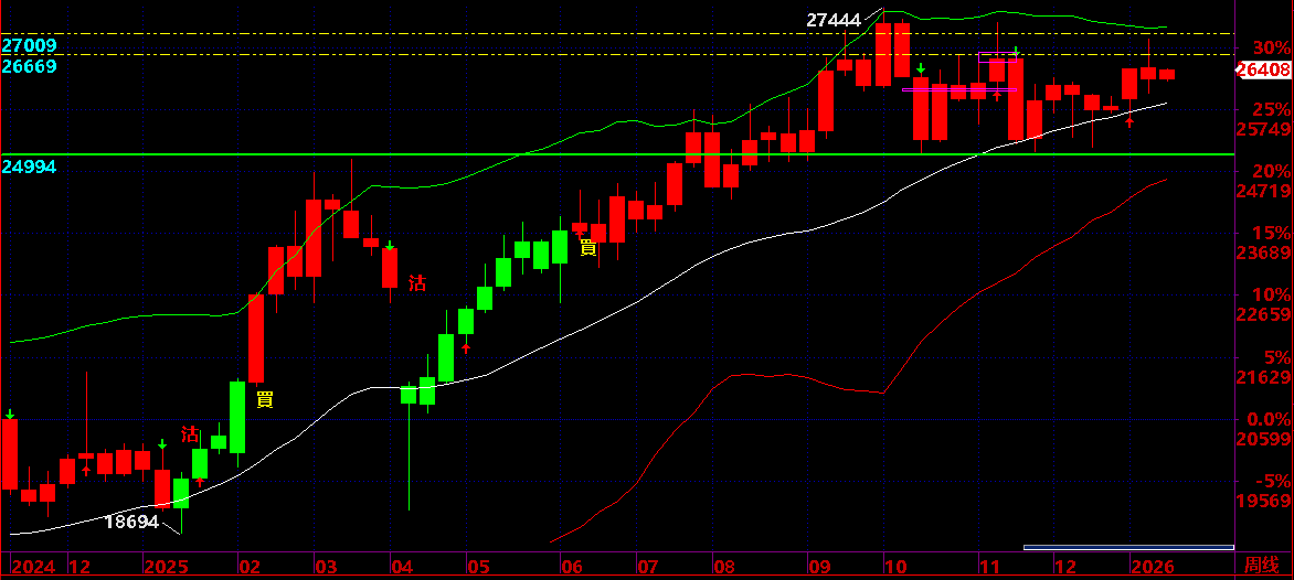 01.08:保持 26000 之上,保持短線上升狀態,才有機會上升到 01.16 後有回吐機會;