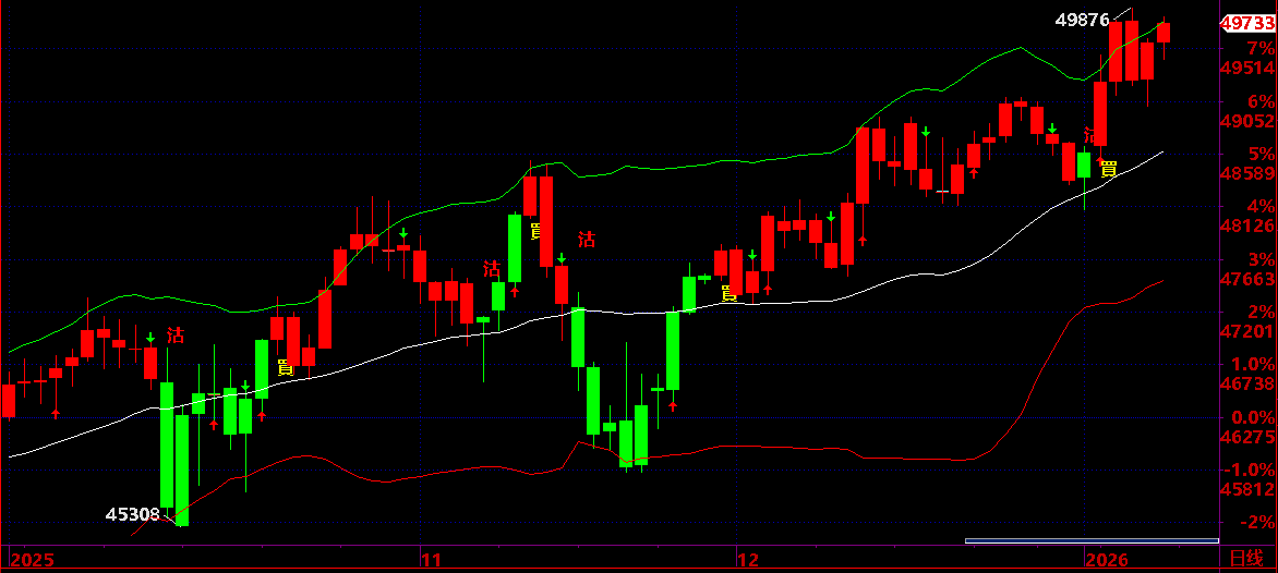01.07:保持 49880 之上,保持短線上升狀態,才有機會上升到 01.15 後有回吐機會;