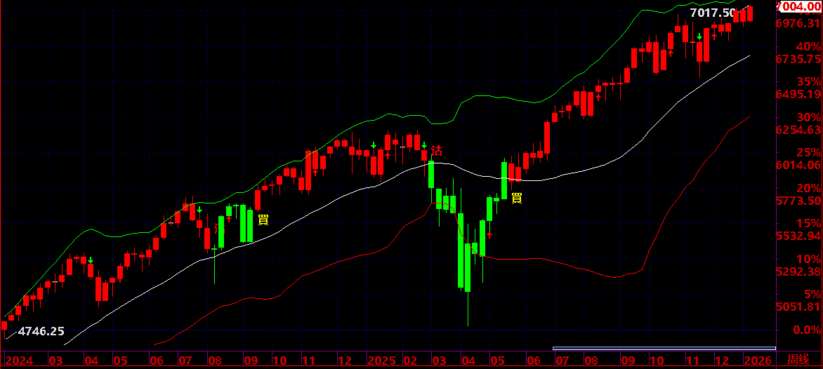 01.08:保持 7010 之上,保持短線上升狀態,才有機會上升到 01.16 後有回吐機會;