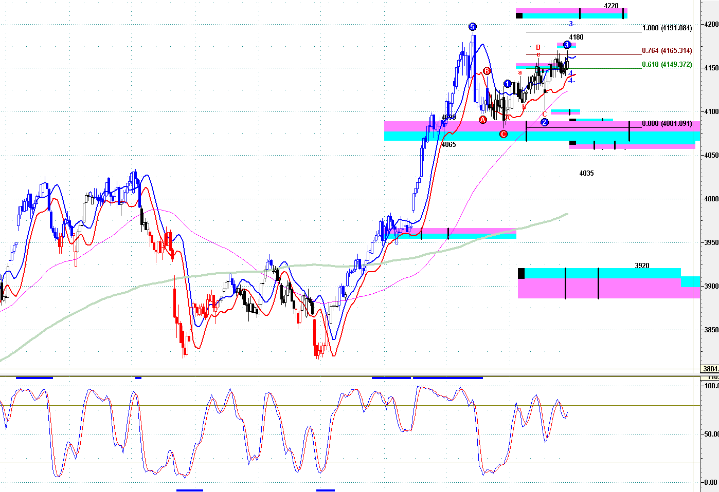 ==》保持 4065 之下,結束短線上升,開始短線回吐 ;