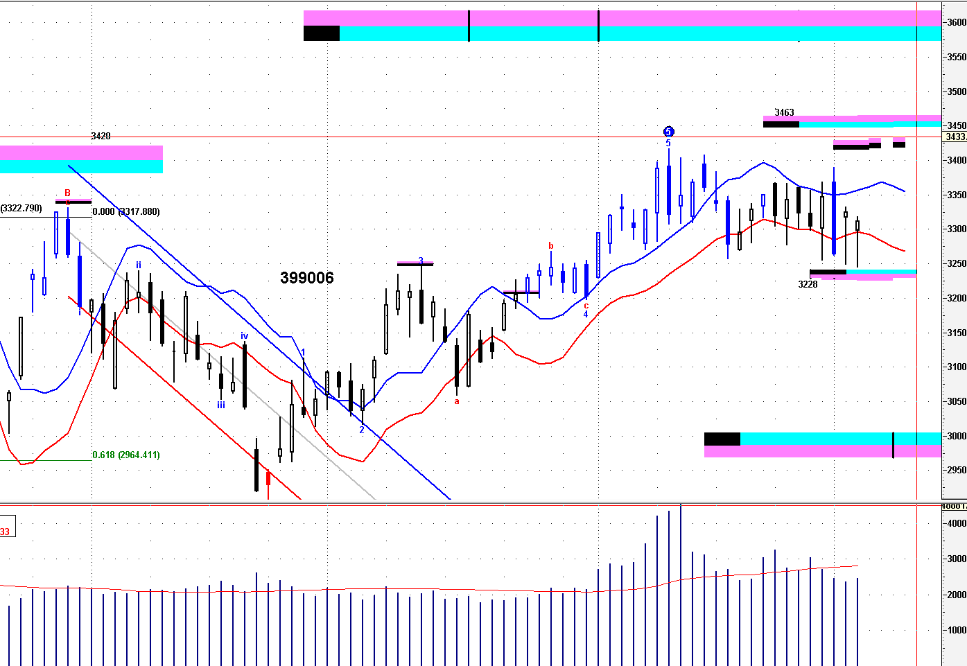 =》保持 3200--25之下,短線轉弱;