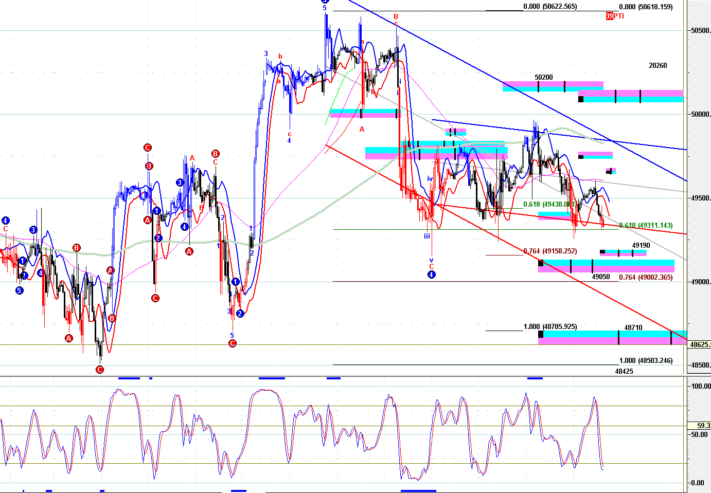02.20 pm 恒指、HHI、黃金、YM、ES、NQ期貨技術圖表