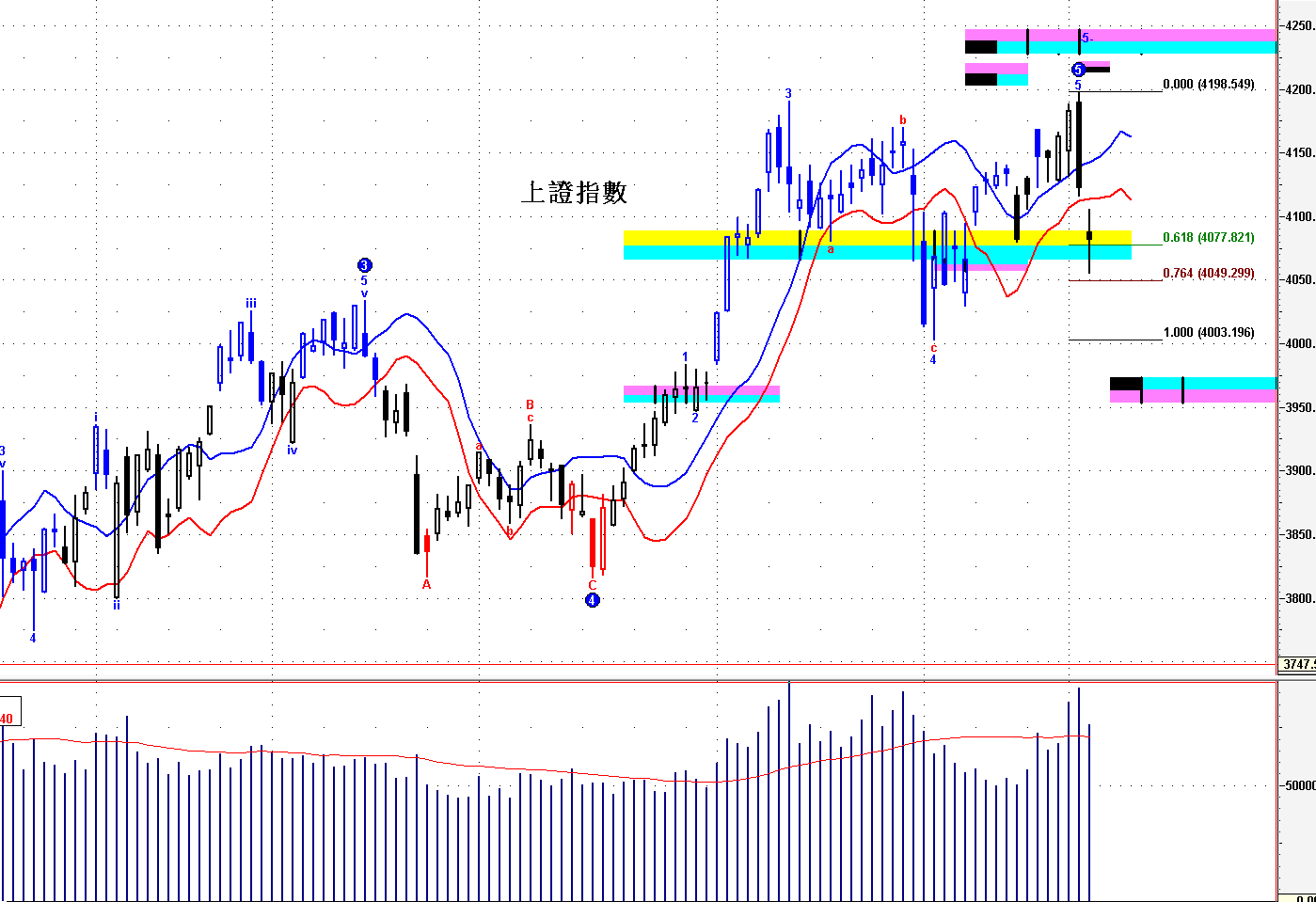 ==》保持 4000--30 之下,結束短線上升,開始短線回吐 ;