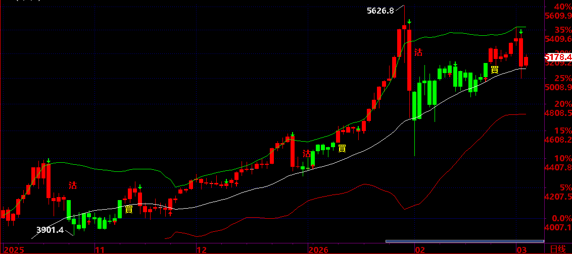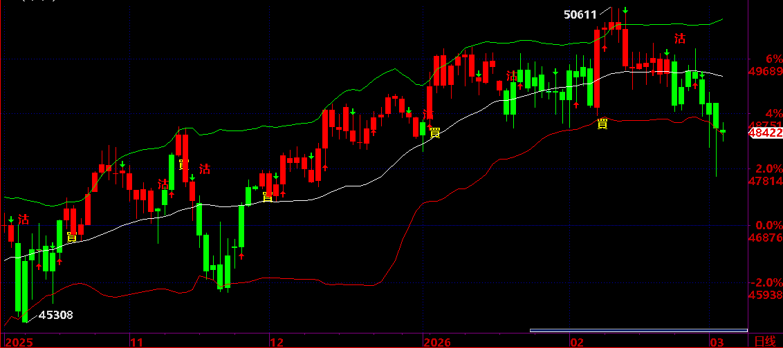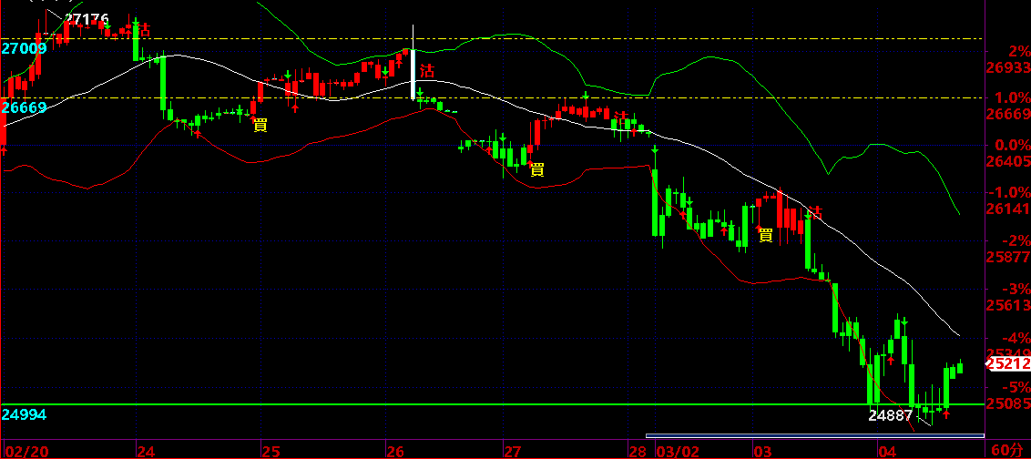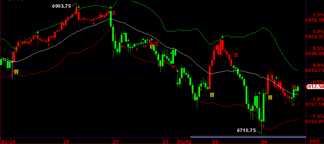 03.04pm 恒指、HHI、黃金、YM、ES、NQ期貨技術圖表