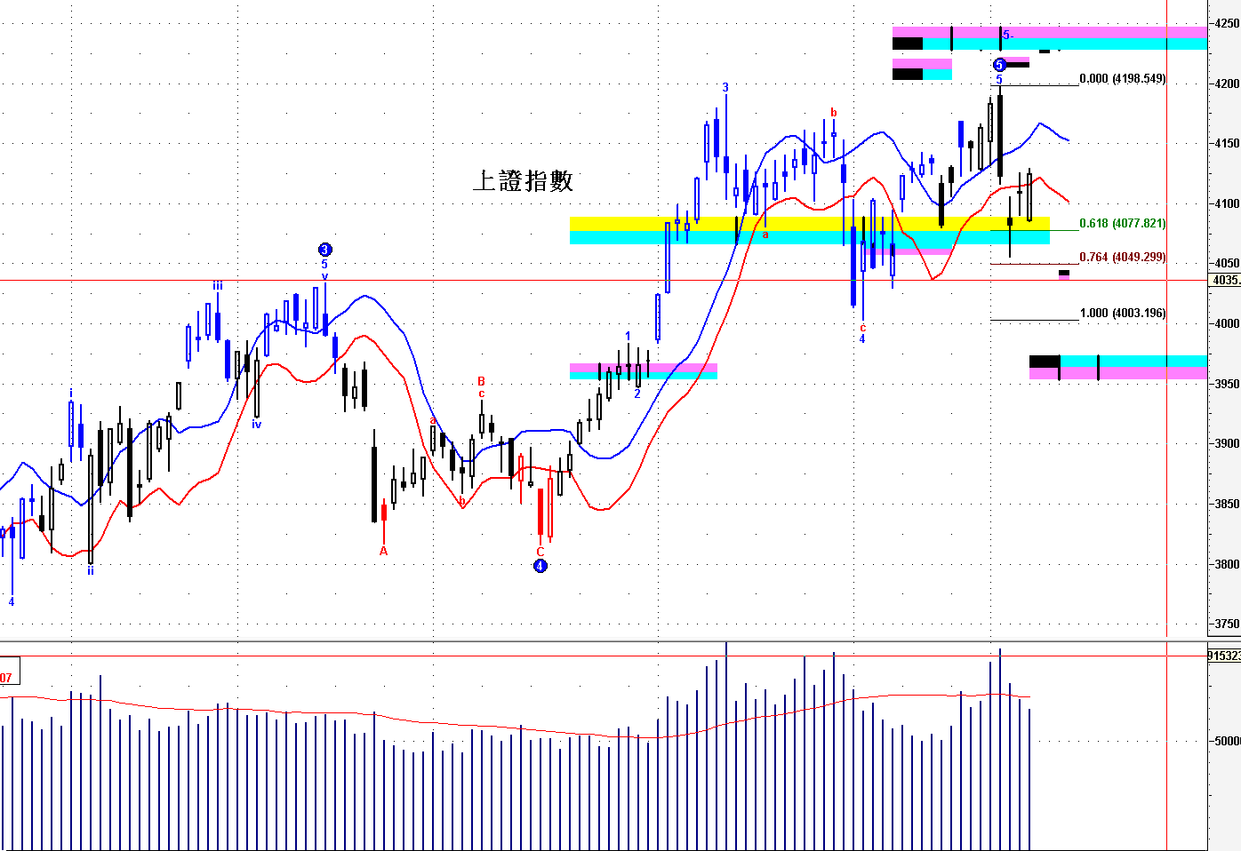 ==》保持 4000--30 之下,結束短線上升,開始短線回吐 ;