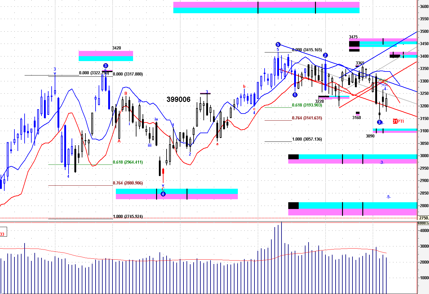 =》保持 3280---3350之下,結束短線波段上升。。。;