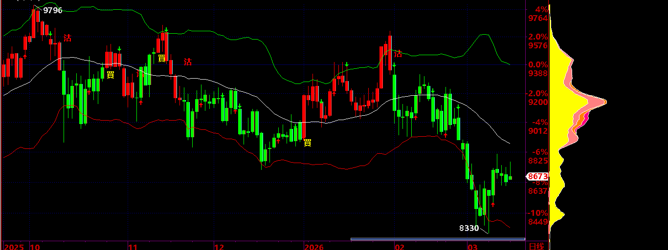 03.03:保持 8580之下,保持 回落狀態,才有機會回落到 03.19 後有反彈機會;