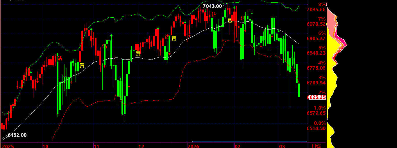 03.04:保持 6700 之下,保持短線回落狀態,才有機會回落到 03.12後有反彈機會;