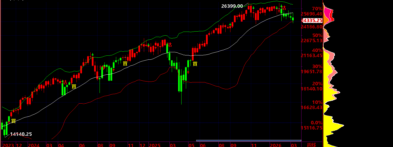 03.13:保持 26300之下,保持短線下跌狀態,才有機會下跌到 04.24 後有反彈機會;