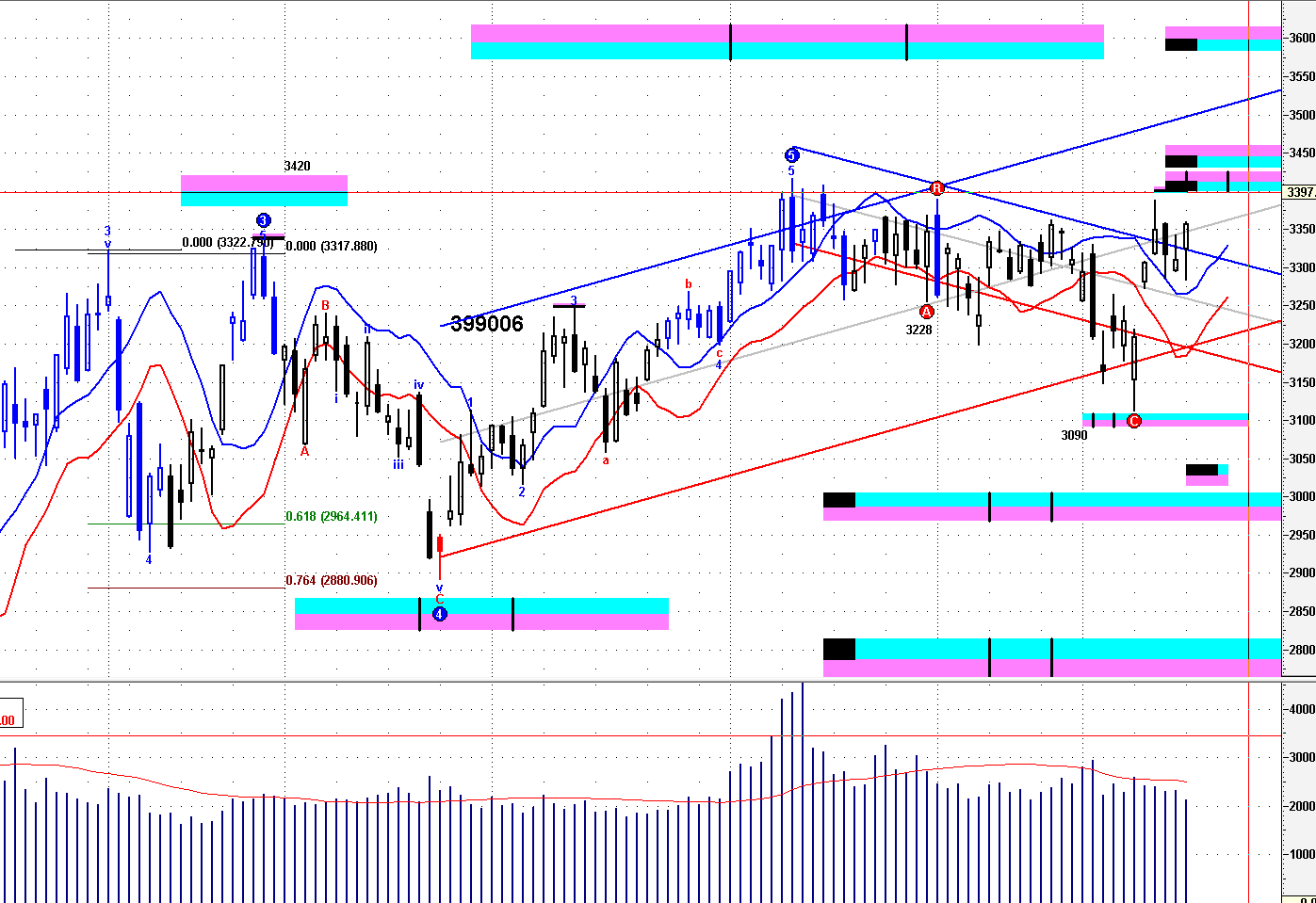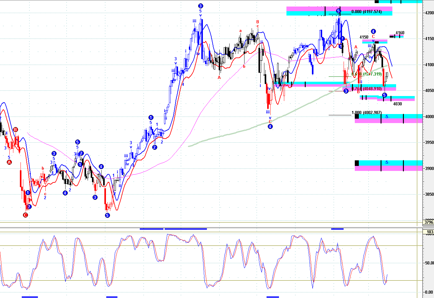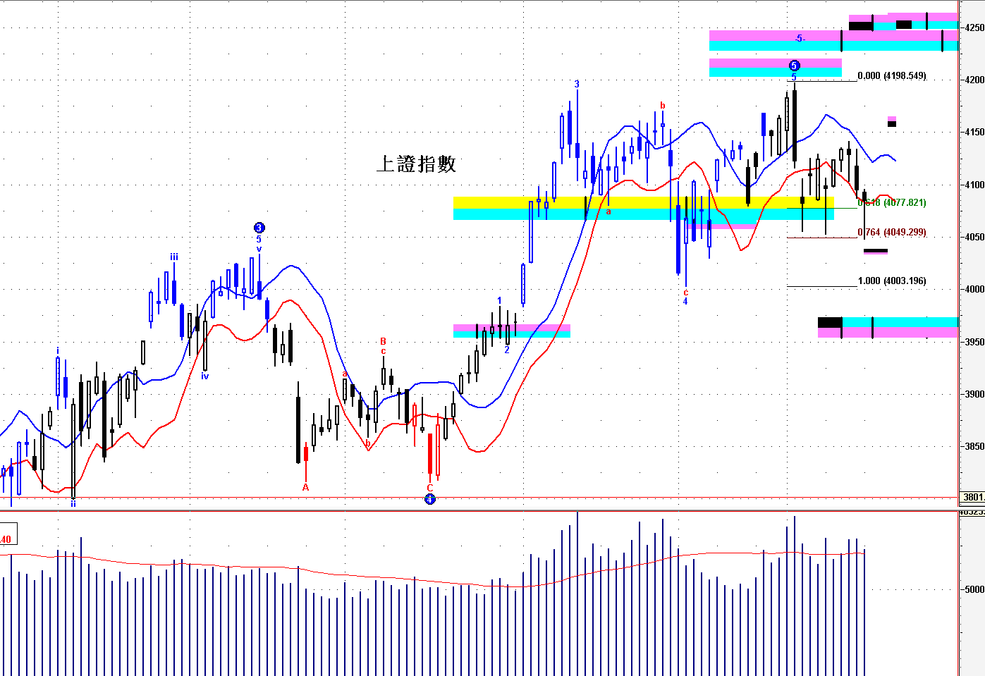 ==》保持 4000--30 之下,結束短線上升,開始短線回吐 ;