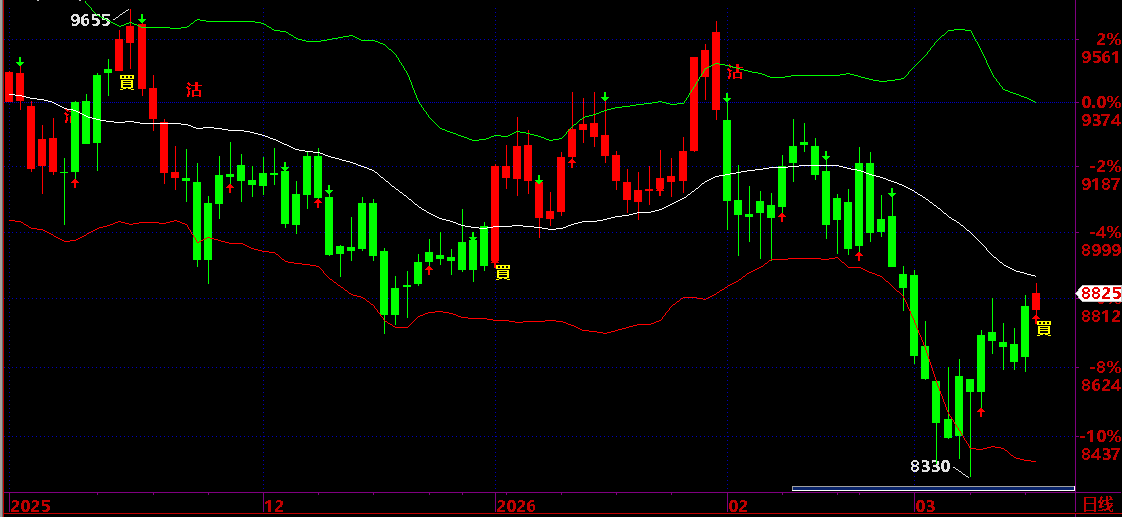 買入機會:轉紅色時候,出現“買”,或在紅色K線出現向上箭頭