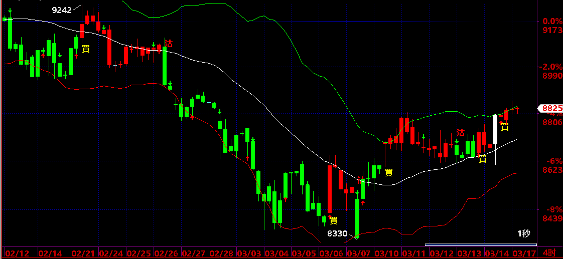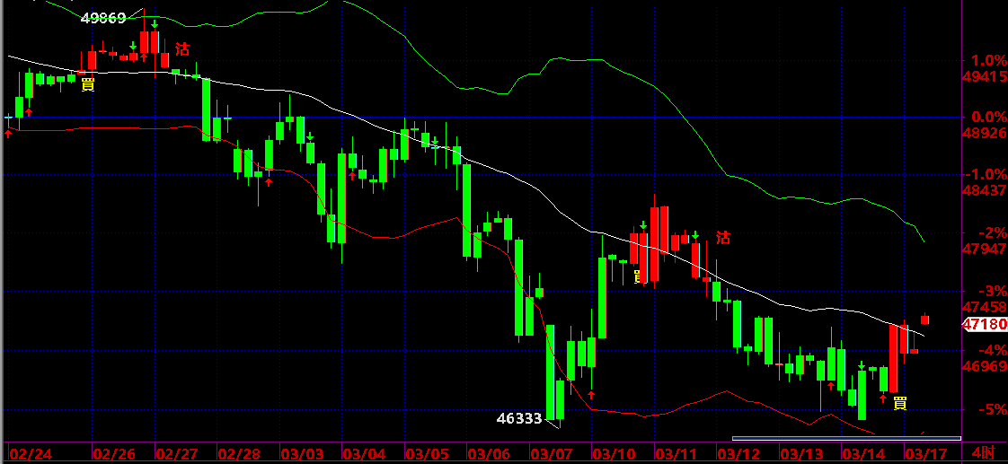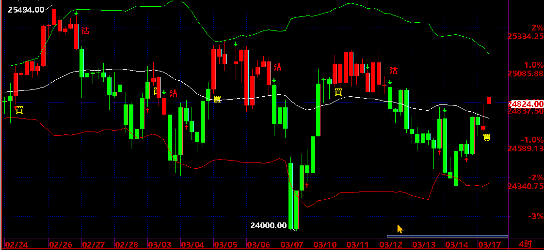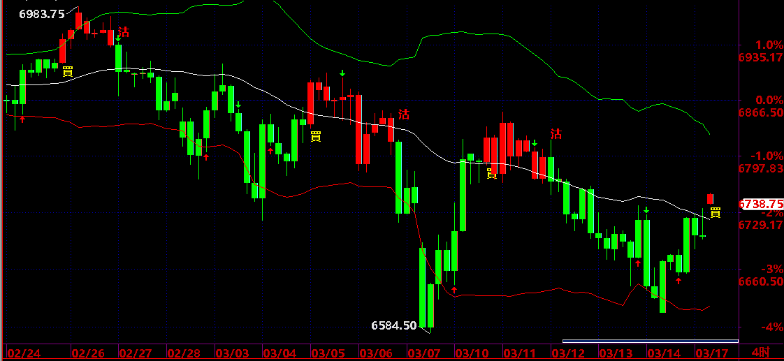買入後平倉機會:出現向下箭頭或轉綠色出現“沽”