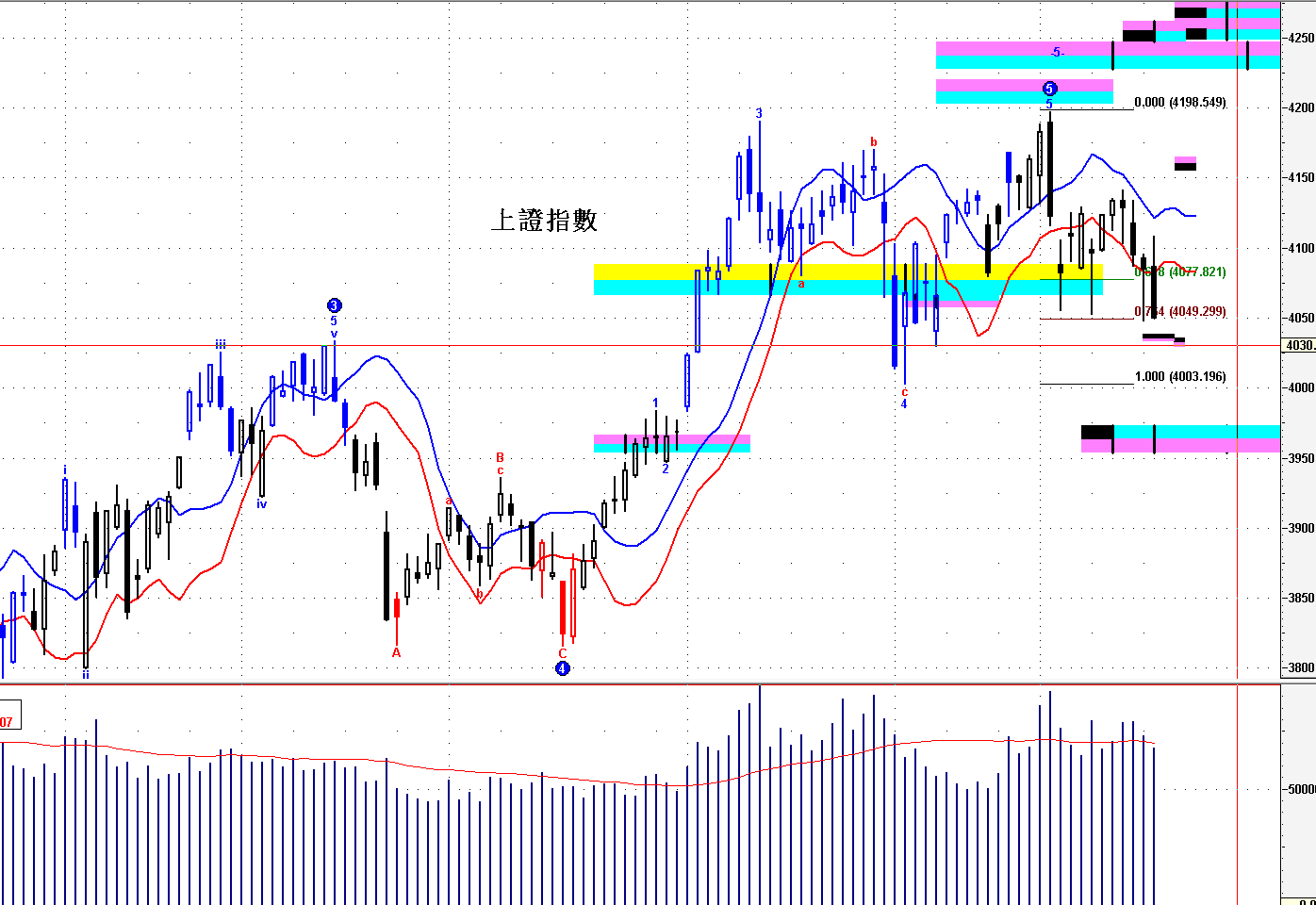 ==》保持 4000--30 之下,結束短線上升,開始短線回吐 ;