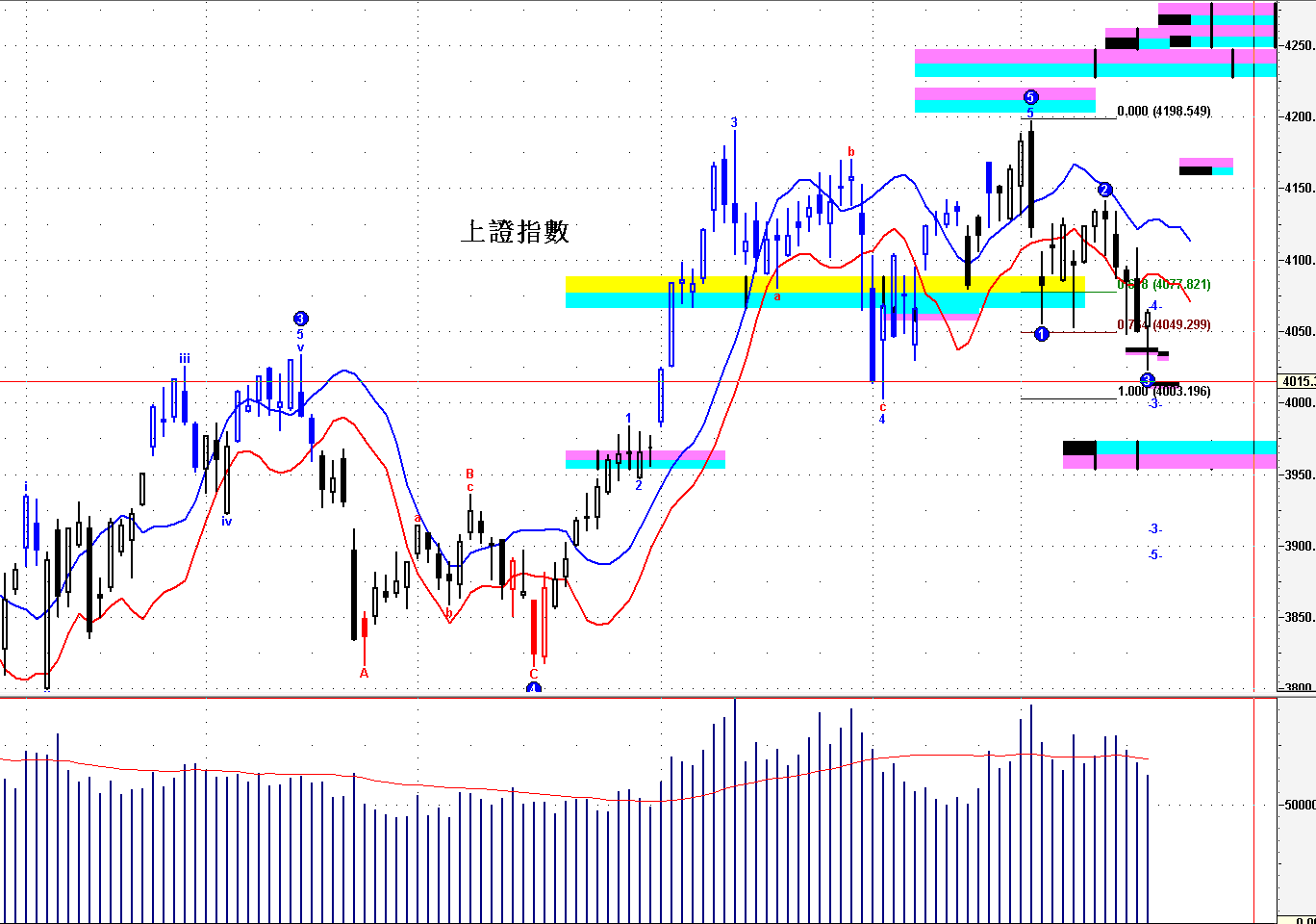 ==》保持 4000--30 之下,結束短線上升,開始短線回吐 ;
