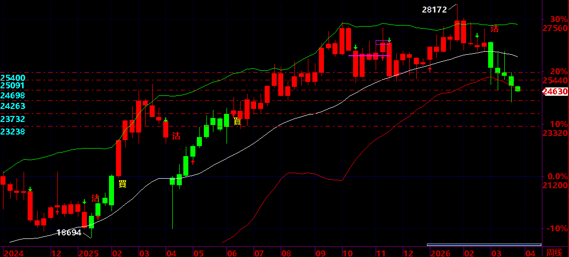 03.13:保持 26300之下,保持短線下跌狀態,才有機會下跌到 04.24 後有反彈機會;