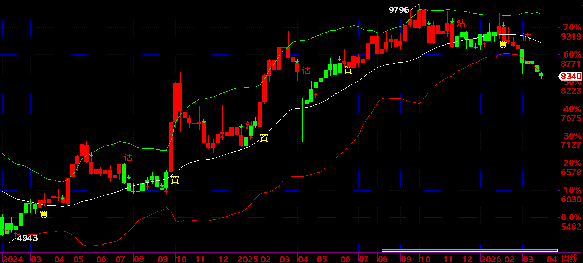 03.27:保持 8230之下,保持 回落狀態,才有機會回落到 04.17 後有反彈機會;