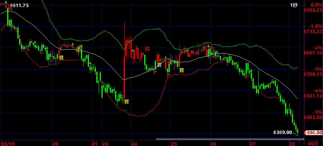 買入後平倉機會:出現向下箭頭或轉綠色出現“沽”