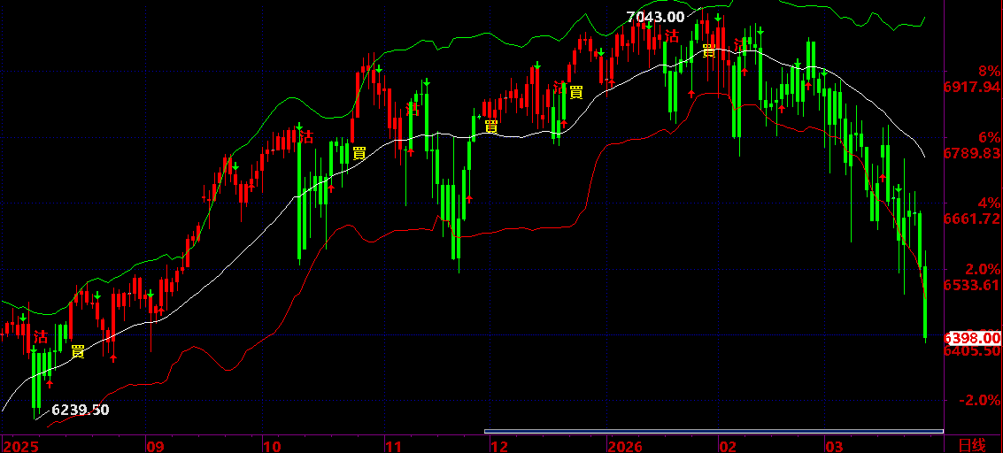 03.06:保持 6580 之下,保持回落狀態,才有機會回落到 03.25 後有反彈機會;