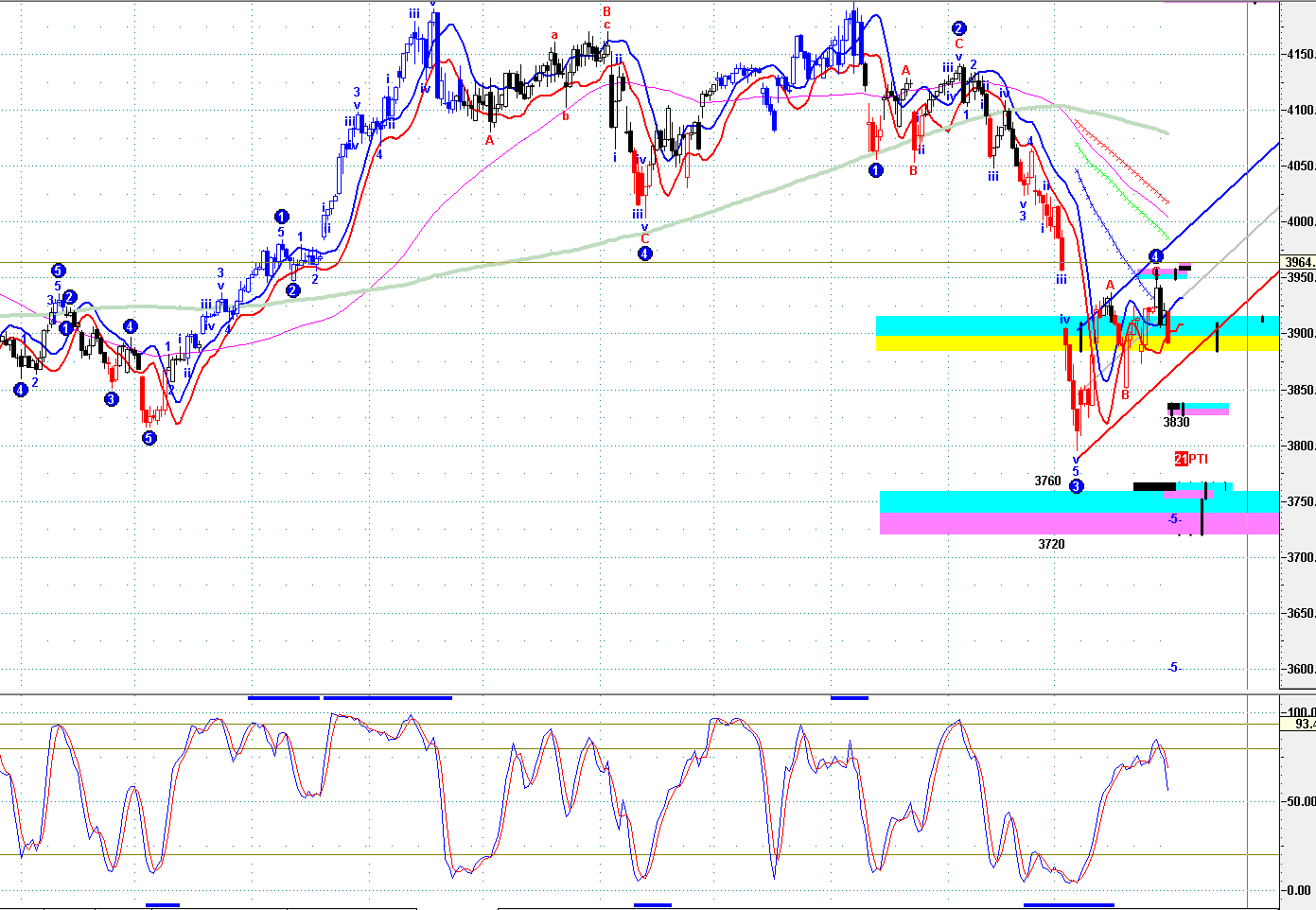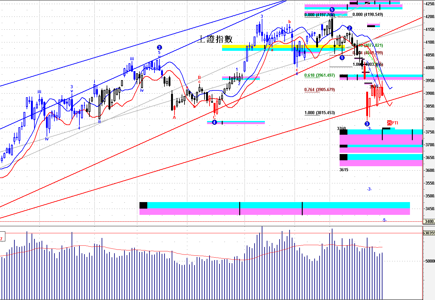 ==》保持 3730之下,短線開始轉弱,保持回落狀態,有機會見 3050--3360;
