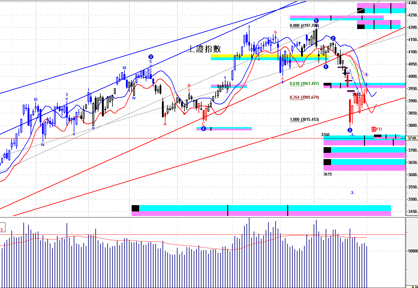 =》保持 3815之下,開始回吐;