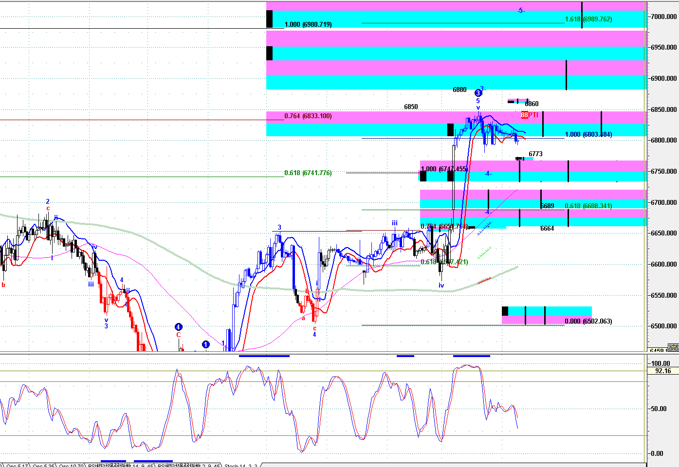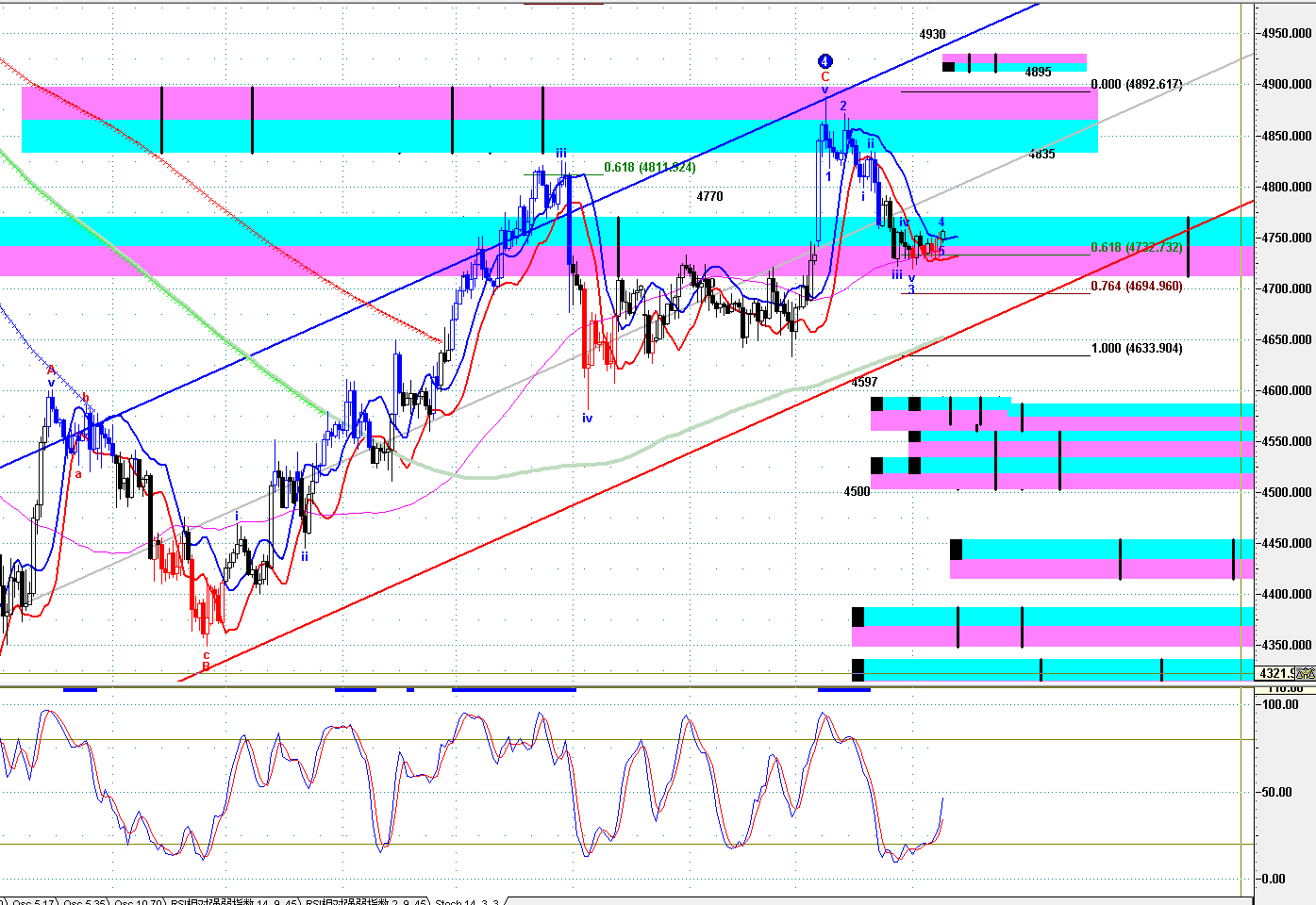 04.09pm 恒指、HHI、黃金、YM、ES、NQ期貨技術圖表