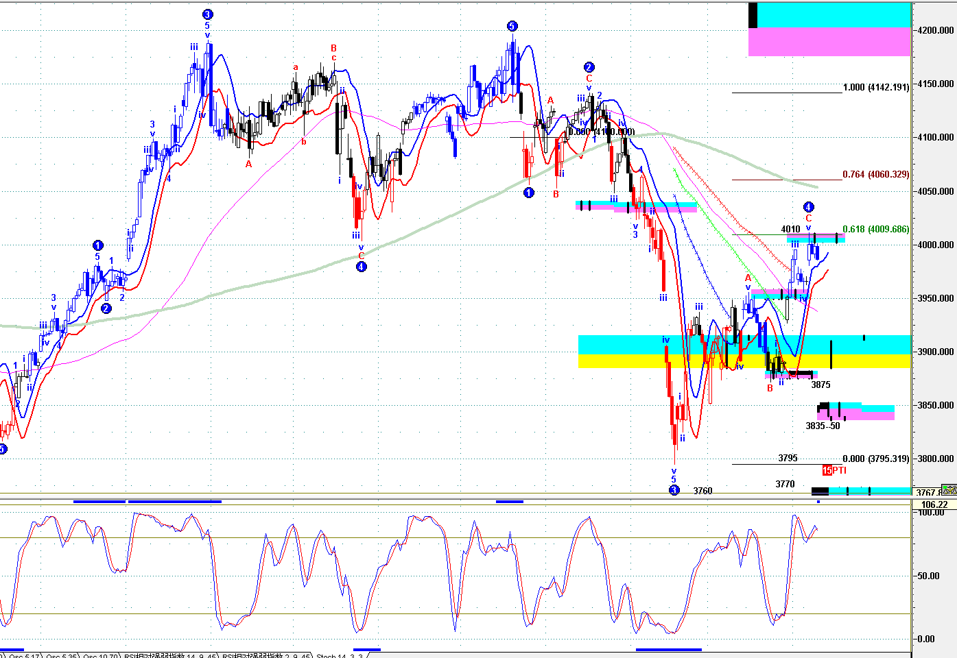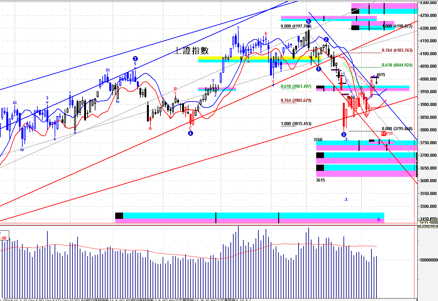 =》保持 3770--3815之下,短線轉弱;