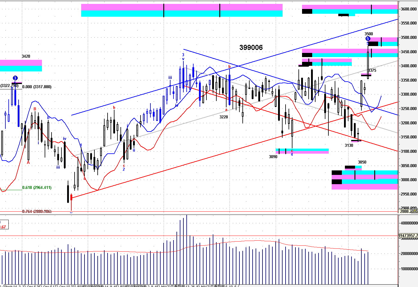 =》保持 3280---3350之下,結束短線波段上升。。。;