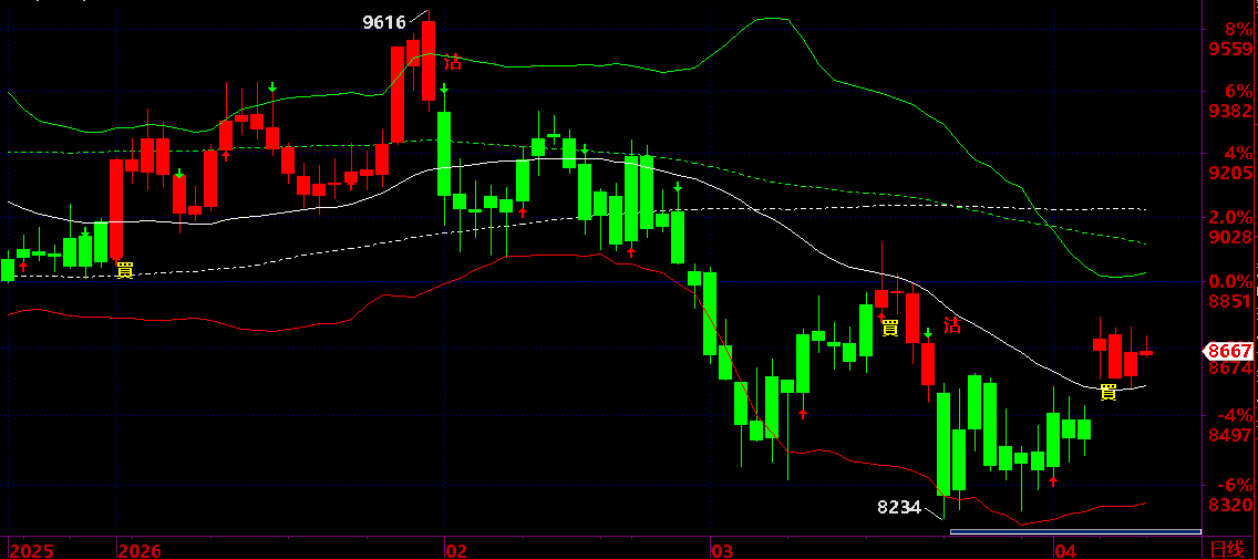 04.03 已經提醒:保持 8580之上,保持短線反彈狀態,才有機會反彈到 04.15 後有回吐機會;