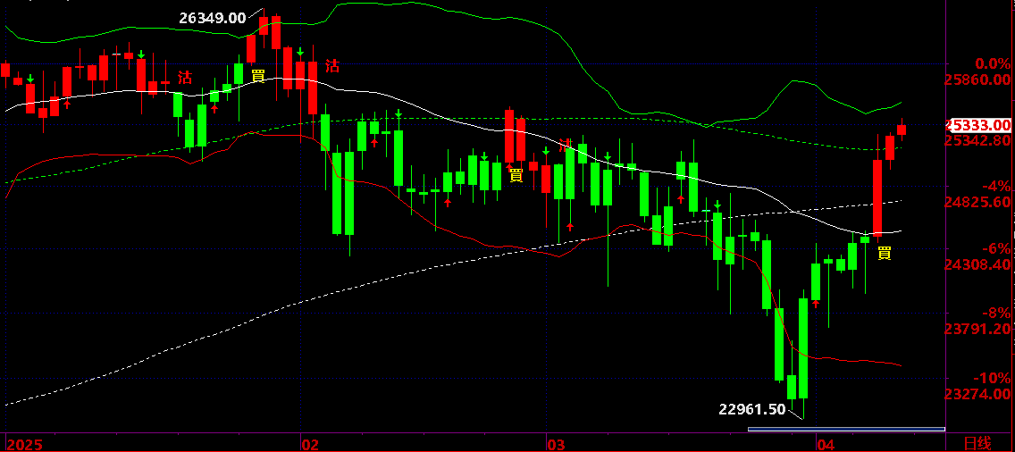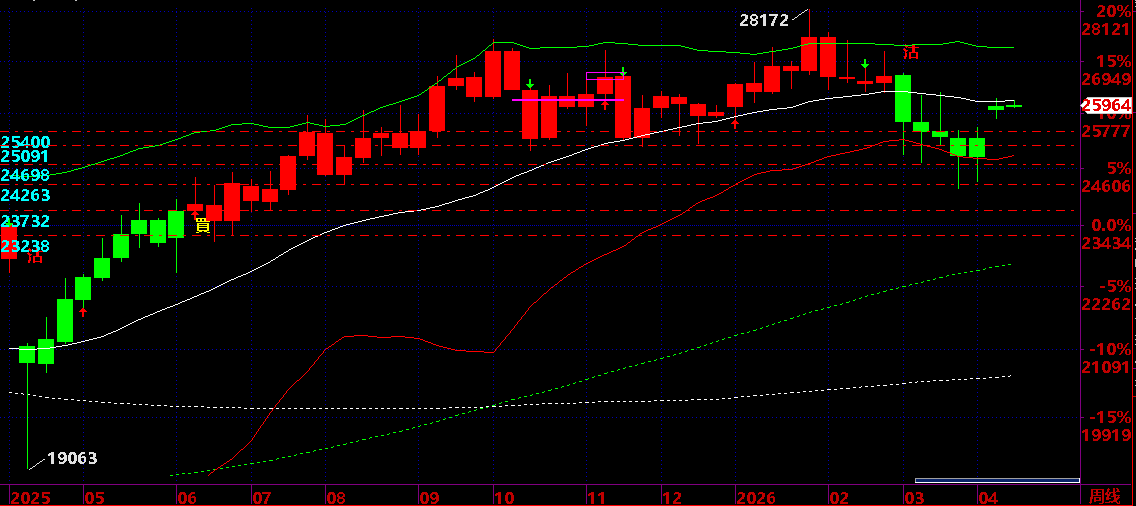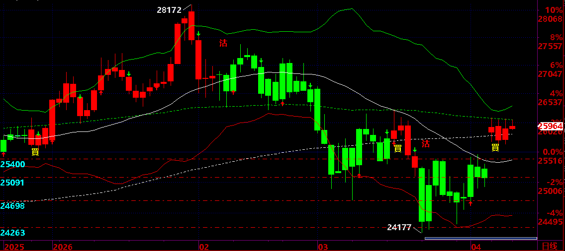 04.03 已經提醒:保持 25480之上,保持短線反彈狀態,才有機會反彈到 04.15 後有回吐機會;