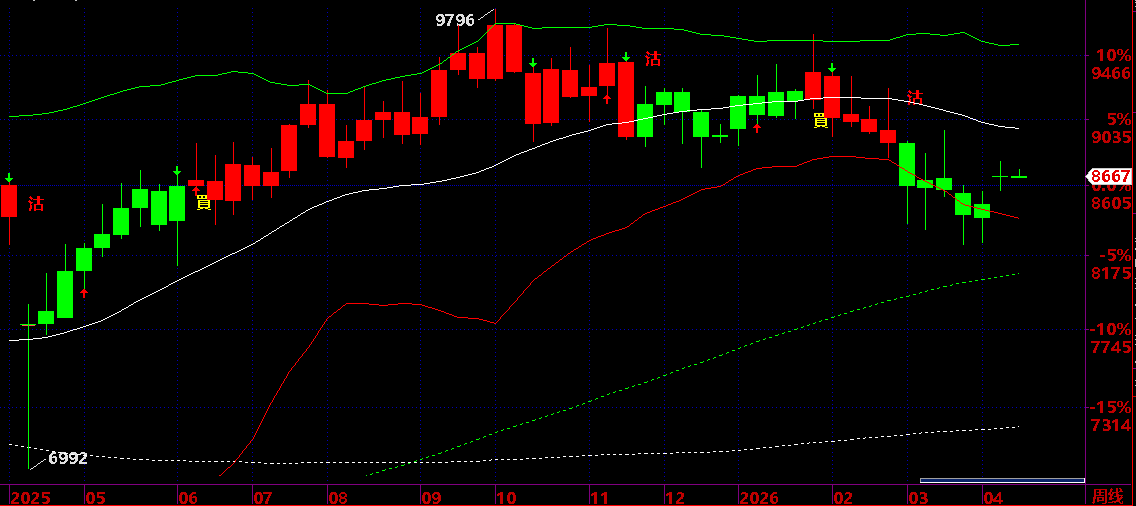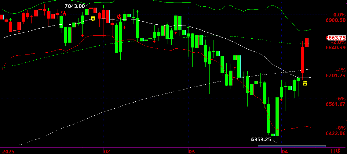 阻力:6660*(=》6880(04.10高見 6888))、6700--60、6820--80、6915、6980、7050