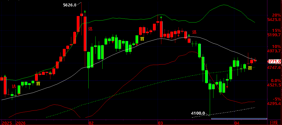 03.27 已經提醒:保持 4100之下,保持短線回落狀態,才有機會回落到 05.08 後有反彈機會;