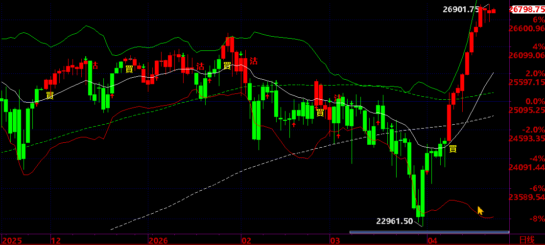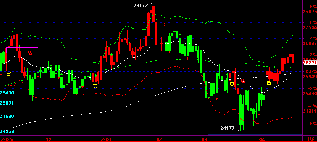 04.22 恒指、HHI、黃金、YM、ES、NQ期貨技術圖表