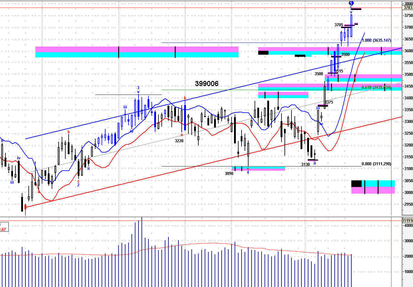 04.15:保持 3600之上,保持上升狀態,才有機會上升到 =》05.06後有回吐機會;