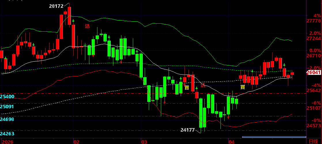 04.10:保持 26110之上,保持反彈狀態,才有機會反彈到 04.28 後有回吐機會;