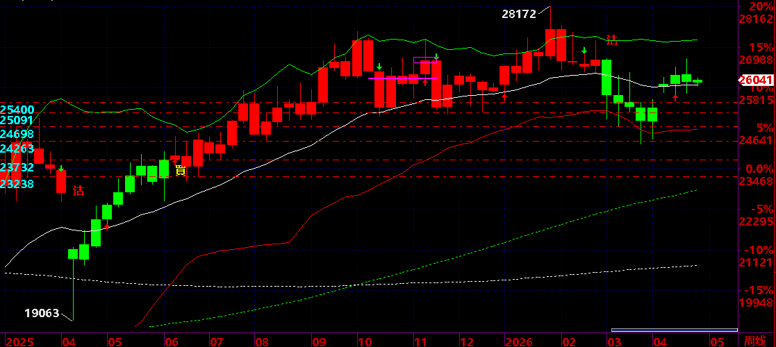 04.24:保持 26660之上,保持短線上升狀態,才有機會上升到 06.05後有回吐機會;