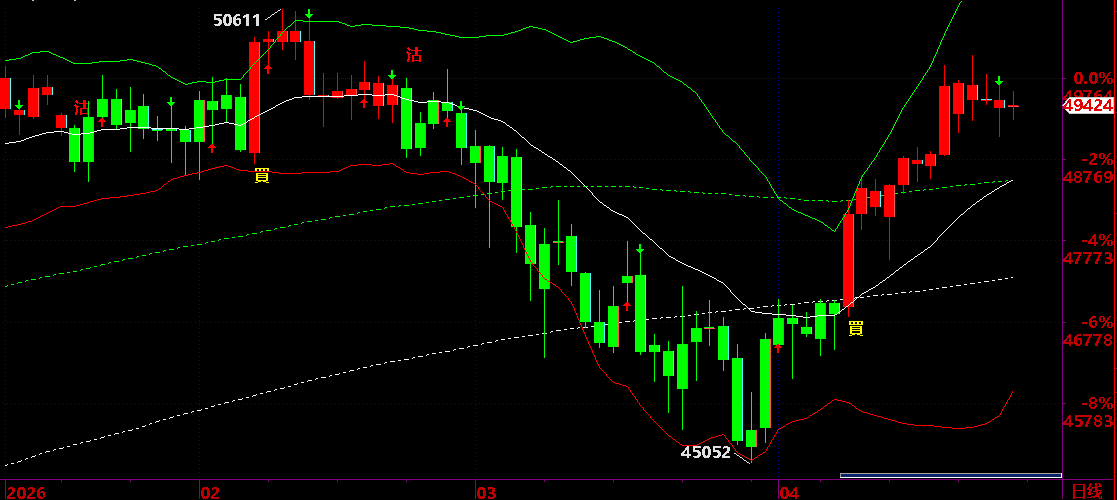 04.13:保持 48560之上,保持反彈狀態,才有機會反彈到 04.29後有回吐機會;