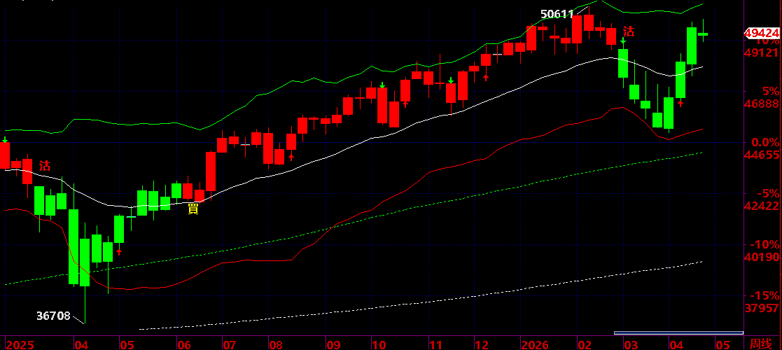 04.24:保持 50100之上,保持短線上升狀態,才有機會上升到 06.05後有回吐機會;