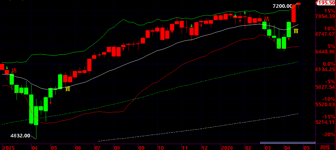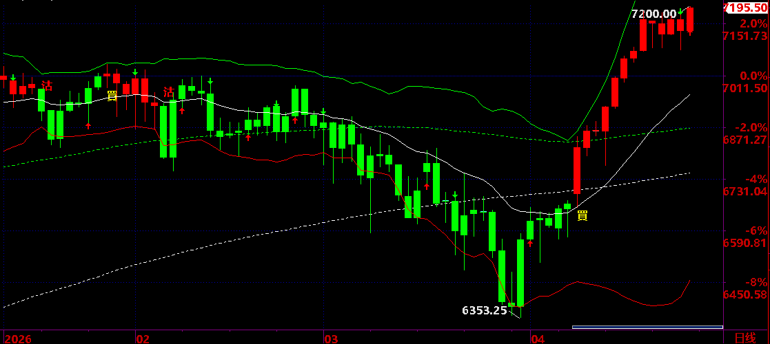 04.24:保持 7200之上,保持短線上升狀態,才有機會上升到 06.05後有回吐機會;