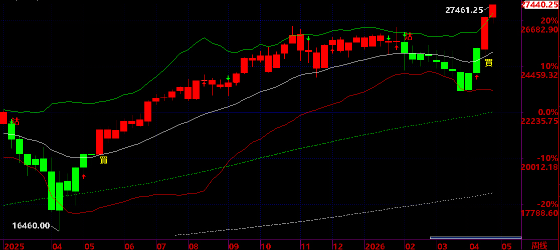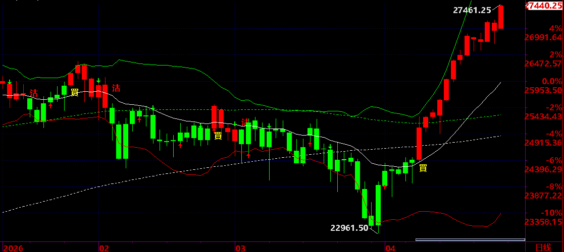 04.24:保持 27500之上,保持短線上升狀態,才有機會上升到 06.05後有回吐機會;