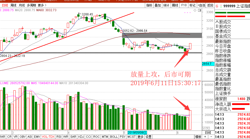 6月11日,432家上市公司发布上半年业绩预告,预喜(包括续盈)企业181家,预喜比例达到42%。从目前情况看,披露半年报业绩预告的公司主要集中在中小板。畜牧业、食品加工、通信和电气设备行业整体预喜比例较高,行业景气度较为明确。 这句话已经让我隐隐感到一丝大盘即将雄起的厚重力量在积蓄酝酿。早盘15分钟跳空高开放量上攻。成交量明显大于前面的15分钟,这是系统给出的果断看多信号,所以在直播间我果断发出指令:只做多,个股只买进!