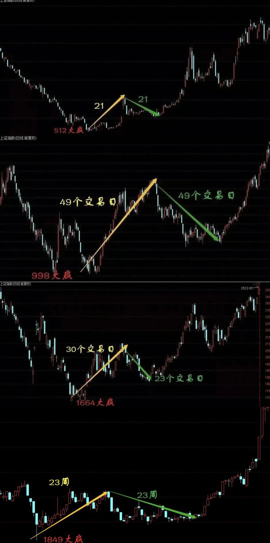 大家可以回顾一下历史,就更能明白理解上述分析:2005年和2015年市场在正式启动大牛市前,在低位反复震荡了多久?!再对比一下2009年小牛市正式启动前,市场在底部区域构筑的时间?以及在熊市中的各种阶段性波段反弹前,市场在相对低位的筑底时间?!