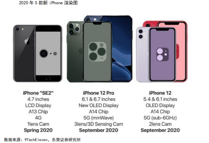 2.更多发售机型:预计今年发布的 5 款 iPhone,从上半年发布的 iPhoneSE 到下半年的 5G 款新机,售价从 3000 元到 10000 元以上,将更广大用户群体囊入其中;除上半年发布的低阶版iPhone 外,下半年发布的 iPhone 屏幕尺寸为 5.4 英寸-6.7 英寸,而 2019 年发布 iPhone尺寸跨度为 5.8 英寸-6.5 英寸,尺寸跨度也有所扩大,预计将吸引更多对机型尺寸较为敏感的用户;