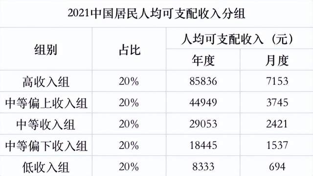 如果将全国居民人数五等分,我们可以更直观地看到收入水平的分布情况。