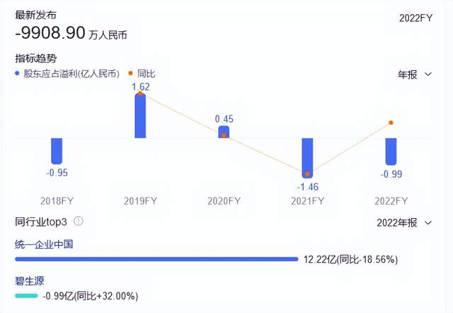 这是碧生源连续第二年归母净利亏损,营收下滑。
